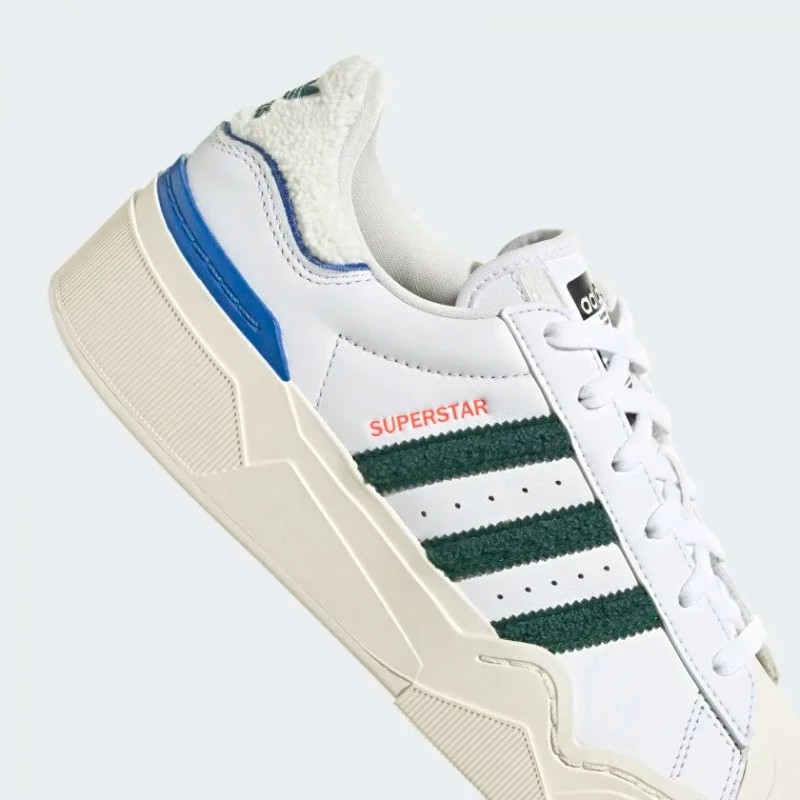 Tu sais reconnaître une chaussure adidas Superstar quand tu la vois. Depuis plus de 50 ans, son look est unique. Les détails OG qui ont forgé la silhouette iconique de notre pop culture sont bien là : 3 bandes dentelées et l’iconique shell-toe en caoutchouc. Ce qui a changé, c’est la semelle extérieure compensée plus imposante pour rehausser le look. « Mon Pied, Ce Héros ! » aime la Superstar !