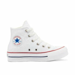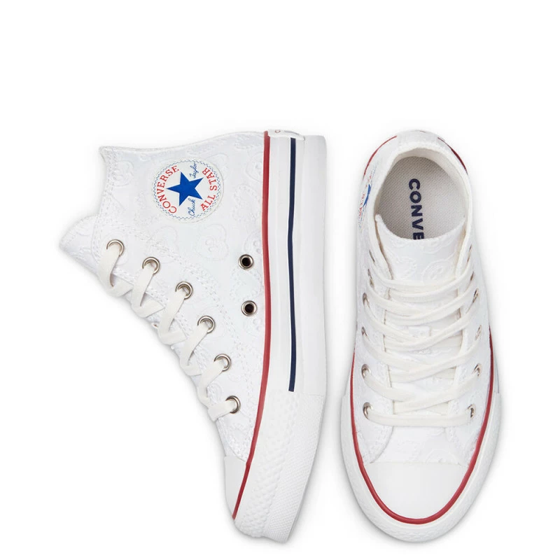 En 1917, dans le Massachusetts aux USA, Converse adapte ses modèles et créer la légendaire ALL STAR. Basket en toile brune, à tige haute, semelle à bout caoutchouté et laçage sous œillets. La chaussure qui révolutionne le jeu des basketteurs grâce à sa bande autour de la semelle pour une meilleure traction, et au rajout d’une pièce autour de la cheville assurant sa protection. C’est Charles Chuck Taylor, le premier-phare du basket-ball qui, séduit par la marque l’a rendra populaire en 1921. La signature du sportif s’ajoute au patch étoilé des authentiques ALL STAR ; la « Chuck Taylor » est née. Converse décline son modèle purement sport en modèles d’usage mixte. Dans les années 50, on la voit aussi bien sur le campus de Stanford qu’aux pieds des ouvriers de la General Motors. Depuis sa création, plus de 700 millions de ALL STARS « Chuck Taylor » ont été vendues dans le monde. « Mon pied, ce Héros ! » porte la CHUCK TAYLOR !