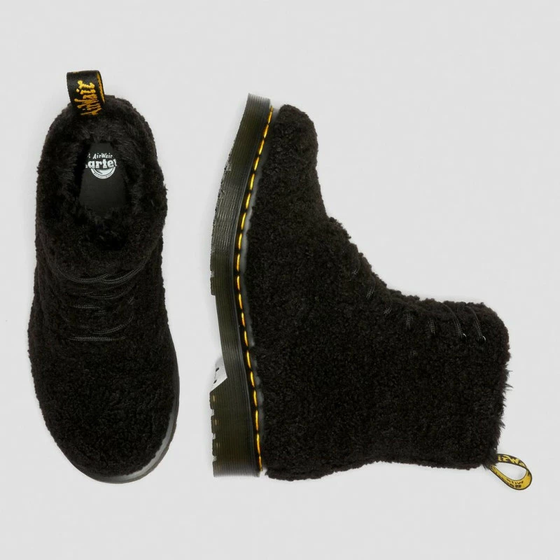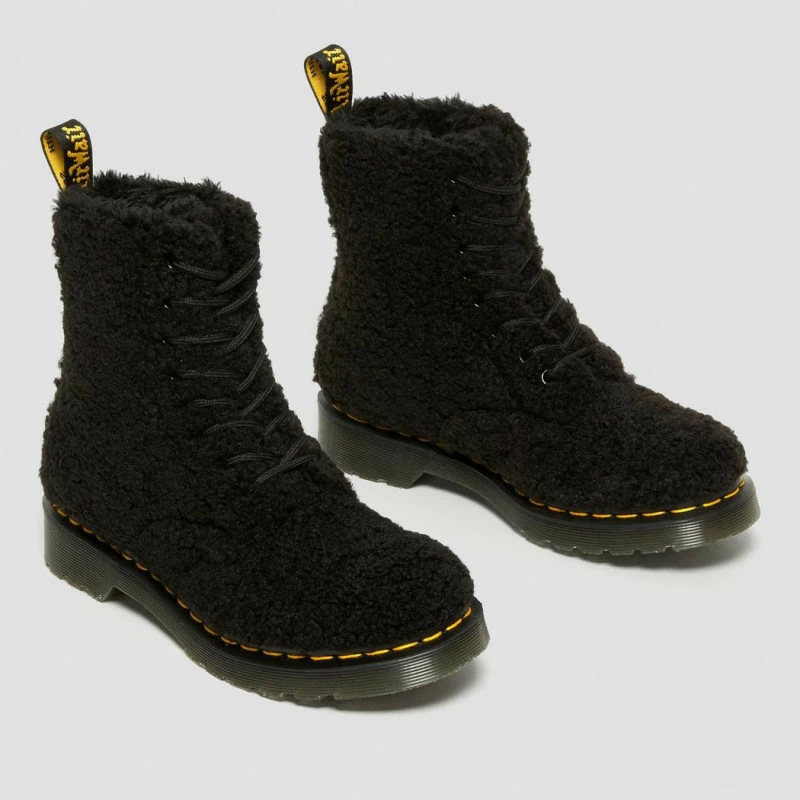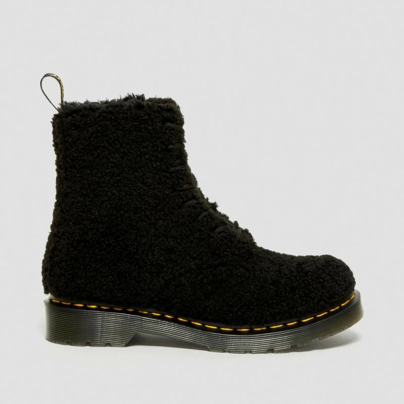 L’intérieur passe à l’extérieur, pour un effet original qui tient chaud. Les boots 1460 en mettant la doublure en borg façon peau lainée à l’extérieur pour leur donner une texture douillette. De plus, le nouvel intérieur en doublure synthétique conserve la chaleur et le confort. Disponibles en noir et pourvues des surpiqûres jaunes signature ainsi que d’une languette à logo AirWair au talon. « Mon pied, ce Héros » aime les nouvelles Doc !