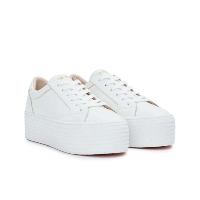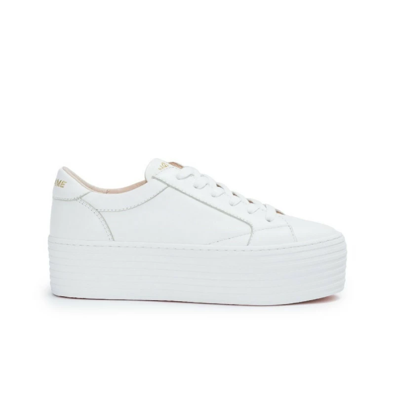 La Spice Sneaker s’affiche dans une version chic en cuir couleur blanche. Son design épuré, avec lacets ton sur ton, est twisté avec style par un patch blanc au talon avec logo doré. Elle conserve son look inimitable grâce à sa plateforme de 5 cm signée No Name. Une basket qui rehausse ton allure avec élégance. « Mon pied, ce Héros », aime la nouvelle Spice Sneaker !
