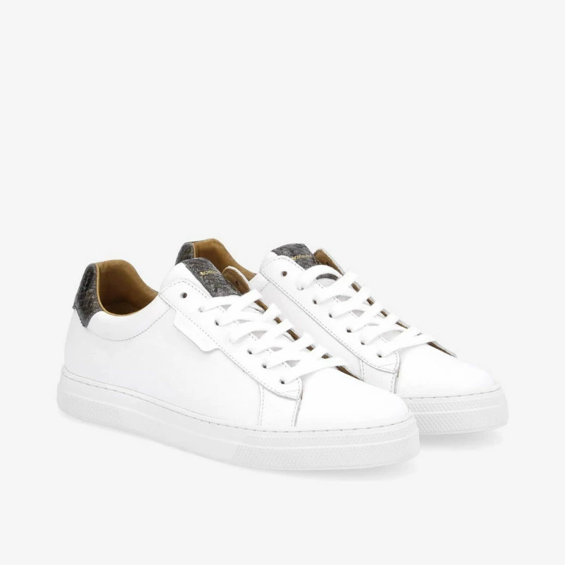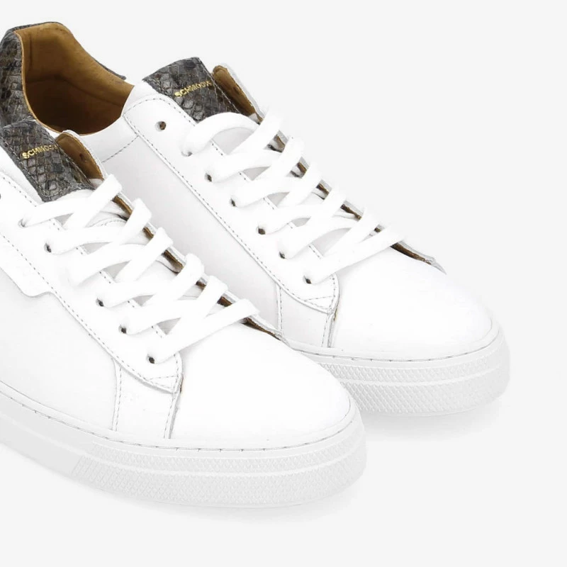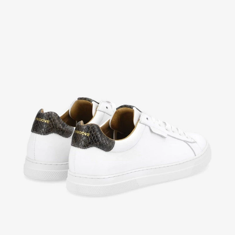 Lâincontournable basket blanche revisitĂ©e par Schmoove dans une version particuliĂšrement Ă©lĂ©gante. Sur cette Spark Clay des touches de cuir imitation serpent anthracite, rehaussĂ©es dâun logo dorĂ©, viennent booster la tige en cuir blanc. Une sneaker au design assurĂ©ment chic facile Ă mixer avec lâensemble du vestiaire. Elle repose sur une semelle en caoutchouc ultra confortable renforcĂ©e par une piqĂ»re latĂ©rale pour une meilleure longĂ©vitĂ©.